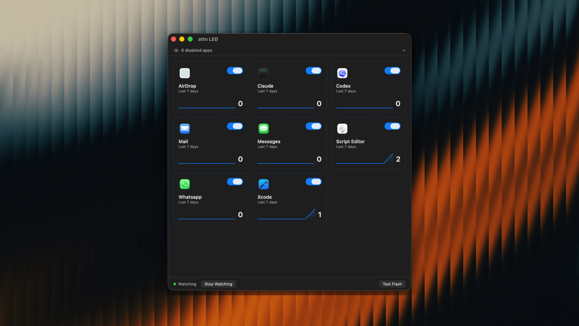 ApplicationApplicationsTools & Utilities attn LED 1.0 by mac torrent February 14, 2026 February 14, 2026 ( attn LED 1.0 )Loading... Download Notification lights, reimagined for Mac. Your camera LED blinks until you open the app with pending notifications, no intrusive banners or sounds to break your flow. A minimal, elegant solution that keeps you informed without demanding immediate attention. Finally, visual notification alerts that respect your focus and workflow, designed specifically for macOS users who want awareness without distraction. What’s New Version 1.0: Release notes were unavailable when this listing was updated. Compatibility: macOS 12.0 or later Screenshots Name: attn LED 1.0 [EDiSO]_Mactorrents.Me.dmg Size: 4.3 MB Files attn LED 1.0 [EDiSO]_Mactorrents.Me.dmg[4.3 MB] Download Torrent Download attnLED 0 comment TwitterRedditTelegramEmail mac torrent MacTorrent - Torrents in Mac. Free Apps, Games & Plugins. Apple Final Cut Pro & Logic Pro X, Adobe Photoshop, Microsoft Office, Pixel Film Studios, previous post SoundSource 6.0.4