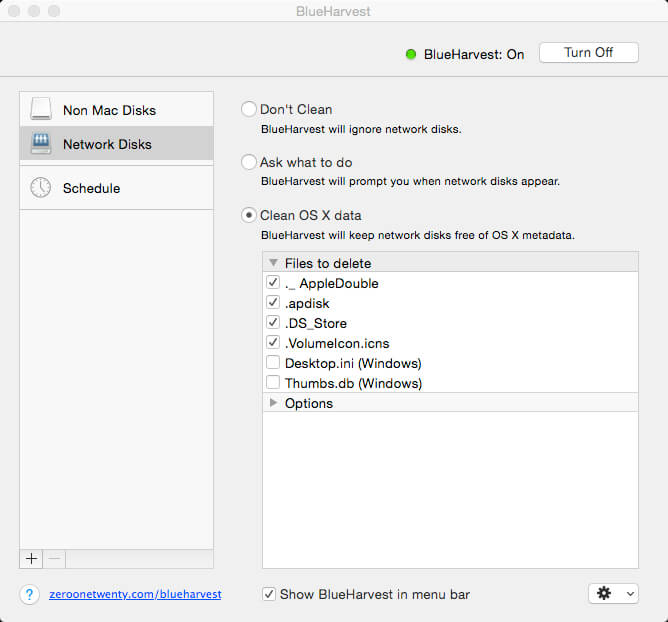 ApplicationApplicationsTools & Utilities BlueHarvest 8.4 by mac torrent January 28, 2026 January 28, 2026 ( BlueHarvest 8.4 )Loading... Download BlueHarvest is an exterminator for your Mac’s unnecessary Desktop Service Store (DS_Store) and resource fork (_AppleDouble) files. Whether you manage a version control system or just want to maximize your available memory, DS_Store and _AppleDouble files are a nuisance. Get BlueHarvest, and give those superfluous files the boot. A clean Mac is a happy Mac Keep it clean. Blue Harvest does more than remove existing files — it blocks new ones from being created. Easy interface. With BlueHarvest, a less cluttered Mac is only two clicks away. Instant access. Want to clean up a folder without launching BlueHarvest? Simply control-click. Language: English, German, French, Spanish and others. Compatibility: macOS 10.15 or later, 64-bit processor Homepage: http://www.zeroonetwenty.com/blueharvest/ Screenshots Name: BlueHarvest 8.4_Mactorrents.Me.zip Size: 6.22 MB Files BlueHarvest 8.4_Mactorrents.Me.dmg[6.22 MB] Download Torrent Related Posts:BlueHarvest 8.3.0BlueHarvest 8.2.0 Download blueharvest 0 comment TwitterRedditTelegramEmail mac torrent MacTorrent - Torrents in Mac. Free Apps, Games & Plugins. Apple Final Cut Pro & Logic Pro X, Adobe Photoshop, Microsoft Office, Pixel Film Studios, previous post TechSmith Camtasia 2026.0.4 next post EPUB Reader Pro 3.0.1