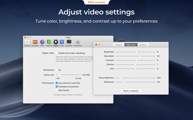 ApplicationApplicationsEntertainment Elmedia Player Pro 8.24 by mac torrent January 30, 2026 January 30, 2026 ( Elmedia Player Pro 8.24 )Loading... Elmedia Video Player is a free media player for macOS. It can play pretty much any file type, be it AVI, MP4, FLV, WMV, MKV, MP3, M4V etc. Elmedia Video Player is an all-in-one solution, that doesn’t call for any additional plugins or codecs. Elmedia Player is available for Apple TV now! This player has a wonderful HD experience to offer to its users thanks to a native hardware accelerated decoding that unloads the processor and brings the smooth and clean video onto the screen. Highlights: Video and audio playback Keep the player on top of all apps to never miss a moment of the movie. Will play any audio track including external. Offers its own volume control. Works great with various subtitles files. Supports Eastern Asian languages, Arabic, Hebrew, etc. Lets you create & manage playlists. Fit the image to your screen. Adjust the playback speed. Supported formats Audio: mp3, m4a, wma, aac, ac3, aiff, ape, flac, mka, ogg, pcm, ra, vaw, waw, wav, aif, oga, caf, midi, mid, acm, dts, mpa, webm Video: 3gp, avi, mp4, mpeg, vob, flv, mov, mkv, 3iv, asf, fli, m1v, m2t, m2ts, m2v, m4v, mp2, mpg, mpg2, mpg4, mpv, mqv, nut, nuv, nsv, qt, ram, rec, rm, rmvb, ts, vcd, vfw, wmv, webm, rv, f4v, ogv, ogm, divx, asx, dat, tp, mjp, yuv, xvid, vc1, mtv, mxf, qtz, dv, hdv, 3g2, mts Subtitles: utf, srt, ass, smi, txt, ssa, smil, jss, rt, idx, sub, xml Flexible settings When watching a movie with subtitles Elmedia Video Player can put them in perfect sync with the video in case there is some mismatch. No conversion needed to play a DVD or a video that was copied from DVD. Extra useful features of Elmedia Video Player PRO! Adjust brightness, contrast, saturation, and more even during playback. Make the sound perfect for your ears with a 10-band equalizer. Choose one of existing presets (Large Hall, Party, etc.) or create your own unique sound. Make a screenshot of any moment in the movie or make the entire video a series of pictures with adjustable interval. Take the most out of virtual surround and speakers emulation. Select the output device for audio. Transmit AC-3/DTS through S/PDIF. A couple of other convenient playback possibilities: Select the language for the sound and subtitles; Set up which monitor will show fullscreen; Flip, rotate and mirror the video; Loop any part of movie or music video continuously; Deinterlace and image enhancement. AirPlay! Elmedia can stream to different AirPlay devices and other Mac computers with Elmedia installed. Things to note: No need to convert any files like AVI, FLV, MKV, 3GP videos to watch them on Apple TV. Note: Elmedia Player does not stream VIDEO_TS, .swf, and .exe files. Embedded and external subtitle files are supported by the player. With Elmedia you can stream YouTube videos to Apple TV. YouTube videos in FLV, MKV, 3GP formats are not supported by AirPlay. Top In-App Purchases: Pro Version – included Compatibility: macOS 10.12 or later, Mac App Store https://geo.itunes.apple.com/app/id1044549675 Screenshots Name: Elmedia_Player_8.24_Mactorrents.Me.dmg Size: 152 MB Files Elmedia_Player_8.24_Mactorrents.Me.dmg[152 MB] Download Torrent Related Posts:Elmedia Player Pro 8.18Elmedia Player Pro 8.17Elmedia Player 8.18Elmedia Player Pro 8.16 ElmediaPlayerPro 0 comment TwitterRedditTelegramEmail mac torrent MacTorrent - Torrents in Mac. Free Apps, Games & Plugins. Apple Final Cut Pro & Logic Pro X, Adobe Photoshop, Microsoft Office, Pixel Film Studios, previous post Privatus 7.3 next post Infuse Pro 8.3.4 (8.3.5450) BETA