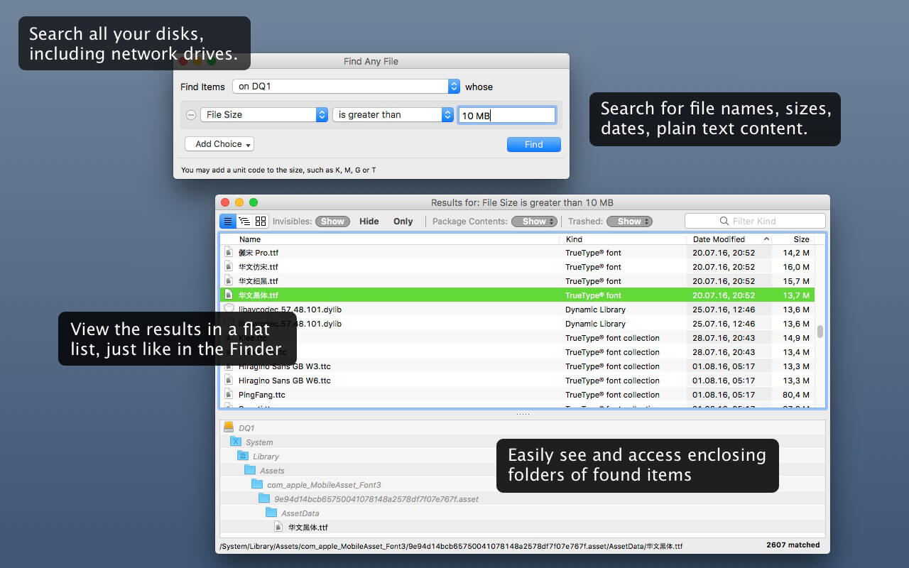 ApplicationApplications Find Any File (FAF) 2.6.1 by mac torrent February 26, 2026 February 26, 2026 ( Find Any File (FAF) 2.6.1 )Loading... Download Find Any File searches your local disks for files by name, creation or modification date, size, or type and creator code (not by content, though). As there are other tools with a similar search operation, here are the special features unique to Find Any File: Has a new hierarchical view of the found items, making it much easier to browse 100s of items (see the screenshot). Can run as root user, finding really any file on your disk, even those that are hidden from normal users. Can save queries and run them again later. Unlike Spotlight (i.e., the Finder’s Find command), it does not access a pre-built database but searches the chosen volume directly. This allows you to find any file, even those inside packages and others excluded from Spotlight search. Hence it is great for finding system files, for example. On the other hand, it may take a little longer than Spotlight, and it is only fast on HFS(+) volumes. But even on mounted network volumes of a Mac OS X server it can still be surprisingly fast. Hence, this is not an entire replacement for Spotlight but it can come handy in certain, if not many, situations. Compatibility: macOS 10.11 or later Homepage http://apps.tempel.org/index.php Screenshots Name: Find_Any_File_2.6.1_Torrentmac.to.dmg Size: 16 MB Files Find_Any_File_2.6.1_Torrentmac.to.dmg [16 MB] Download Torrent Related Posts:Find Any File (FAF) 2.4Find Any File (FAF) 2.5.6Find Any File (FAF) 2.6.0File Cabinet Pro 8.5.2 Download 2.6.1FAFFileFind 0 comment TwitterRedditTelegramEmail mac torrent MacTorrent - Torrents in Mac. Free Apps, Games & Plugins. Apple Final Cut Pro & Logic Pro X, Adobe Photoshop, Microsoft Office, Pixel Film Studios, previous post AltTab 10.3.0 next post Cookie 8.4.3