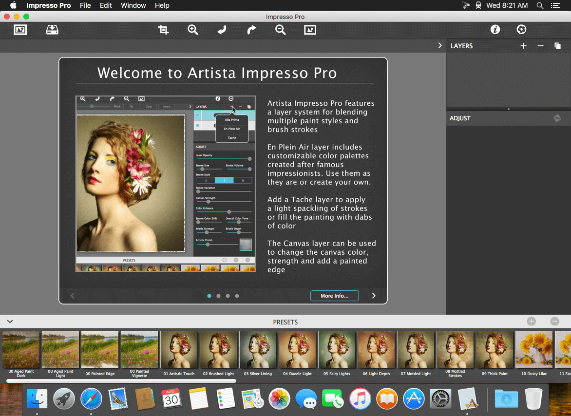 ApplicationApplicationsPhotography JixiPix Artista Impresso Pro 1.8.29 by mac torrent January 30, 2026 January 30, 2026 ( JixiPix Artista Impresso Pro 1.8.29 )Loading... Download For professionals who like creative control we give them Layers for blending multiple paint styles and brushes to paint on and off the impressionism strokes. We have also included an ultra-impressionism effect called ‘Tache’ to cover the painting with broken brush strokes or dabs of color that literally stand out, apply them sparsely or cover the entire painting, the choice is yours. The 19th century brush-wielding Impressionist artists were crazy about flowers and gardens, and it was good. With flowing brush strokes and thickly painted texture, Van Gogh made his Sunflowers immortal with harmonious movement of color, contrast, and form. Monet made his Water Lilly Pond a celebrity. It took their genius and a lifetime of practice navigating the riot of their senses, but these extraordinary artists took what they saw and felt in the petals and leaves and transferred their impressions onto canvasses full of beauty, mood and meaning. Lucky you, 21st century software wielding seer and lovers of beauty, Impresso gives you the same enduring attention to detail, light, color and texture by transforming your photos into multi-textured, stroke-filled Impressionist masterpieces. Keen eyes will love how Impresso maintains the balance of your piece! The results are captivating paintings brimming with passion, life, and beauty. Features A pro workflow adds impressionism styles per layer. With Layers, users can blend styles using brushes to paint on or off areas in the painting! Also, included is the powerful Ellipse Detail tool to add finely painted details to faces, flowers or to create focal points in landscapes. Once completed , resize then hit the ‘Apply’ button to render small brushstrokes inside the Ellipse. With layers photographers and artists now have the power to composite multiple impressionism styles for impressive results. IMPRESSIONISM STYLES Alla Prima (‘wet-on-wet’ or ‘all-at-once’)—is great for portraits! This beautiful paint style starts by filling the painting with an abundance of brushstrokes. A library of artistic finishes compliments this style by adding light, color and movement with controls over strength. En Plein Air (in open air) is perfect for landscapes. This stroke-filled effect consists of eight artists’ palettes created by famous impressionists. Use them as they are or edit the paint colors to make your own palette. The Save Preset feature keeps the palette and all the layers intact for future projects. Tache (‘spot’ or ‘blot’) applies broken brushstrokes throughout the image. This technique of laying thick patches, flecks and dabs of color is great for making paint look as if it stands out from the surface. Apply a light spackling of strokes or fill the painting with dabs of color—the choice is up to you! Canvas layer is added to each painting created. By creating a canvas layer, it can now be turned on or off for viewing strokes created on previous layers. As with traditional methods, the canvas is an integral part of the painting, so we have locked the layer to keep it from being accidentally deleted. INCLUDES Three stroke styles: #1 is a series of straighter strokes, #2 combines the first style with curved ones, and #3 is an abstract set. Then the Tache effect has its own custom set of brushes designed for depth. Three Impressionism styles: Alla Prima, En Plein Air and Tache (pronounced tash) Pro Layers with built-in Impressionism styles for multi-layer types and options to duplicate, reorder, and delete them Control over detail ellipse tool, stroke size, stroke volume, bristle strength & depth, artistic finishes and the painted edge Save Preset to save customized paint palettes and keep all strokes & layers intact for future projects Smart brushes to remove or add impressionism effect—the brushes are smart because they remove the effect by stroke Mask with fill, invert and clear to support brushes and layers Canvas and linen texture 8 Impressionist palette styles One-touch paint styles 70 Artistic finishes One-of-a-kind ellipse detail tool renders small brush strokes inside the placed area Plugin for Photoshop CS3+, Lightroom and Elements for Mac and Windows Compatibility: mac OS 10.12 or later Homepage https://jixipix.com/artista-impresso-pro/details.html Screenshots Name: Impresso_Pro_1.8.29_Mactorrents.Me.dmg Size: 121 MB Files Impresso_Pro_1.8.29_Mactorrents.Me.dmg[121 MB] Download Torrent Related Posts:JixiPix Artista Impresso Pro 1.8.26JixiPix Artista Impresso Pro 1.8.24JixiPix Artista Impresso Pro 1.8.22JixiPix Artista Impresso Pro 1.8.19 Download 1.8.29ArtistaImpressoJixipixPro 0 comment TwitterRedditTelegramEmail mac torrent MacTorrent - Torrents in Mac. Free Apps, Games & Plugins. Apple Final Cut Pro & Logic Pro X, Adobe Photoshop, Microsoft Office, Pixel Film Studios, previous post MainStage 3 v4.0 next post Ghost Buster Pro 4.1.2