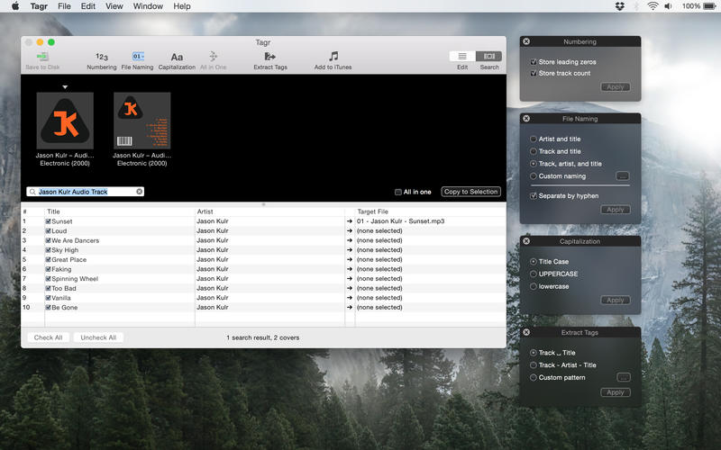 ApplicationApplicationsTools & Utilities Tagr 5.12.0 by mac torrent February 11, 2026 February 11, 2026 ( Tagr 5.12.0 )Loading... Download Tagr is an application that helps you organize your music collection. With Tagr you can easily edit information such as a song’s artist, title, or album cover. Tagr also allows you to control the way your files are named, numbered, and capitalized. There is no more need for having other tools dictate that for you! Features Edit meta data of individual MP3 and M4A files or Edit a list of files in bulk Embed cover art into your songs Apply uppercase, lowercase, and title case capitalization schemes Automatically generate track numbers Choose from predefined file naming schemes or define your own Extract tags from the file name using predefined or custom patterns Search discogs.com for album information and copy it to your songs Listen to songs through QuickLook Customize Tagr to your needs Compatibility: macOS 11.0 or later Mac App Store https://geo.itunes.apple.com/app/id1450308734 Screenshots Name: Tagr_5.12.0_Mactorrents.Me.dmg Size: 10.4 MB Files Tagr_5.12.0_Mactorrents.Me.dmg[10.4 MB] Download Torrent Related Posts:Tagr 5.6.3Tagr 5.6.2Tagr 5.11.1Tagr 5.11.2 Download 5.12.0Tagr 0 comment TwitterRedditTelegramEmail mac torrent MacTorrent - Torrents in Mac. Free Apps, Games & Plugins. Apple Final Cut Pro & Logic Pro X, Adobe Photoshop, Microsoft Office, Pixel Film Studios, previous post Bartender 6.4.1