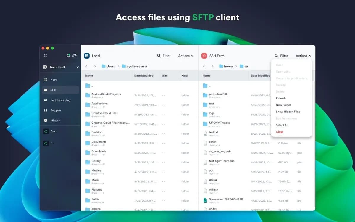 ApplicationApplicationsDeveloper tools Termius 9.34.8 by mac torrent January 28, 2026 January 28, 2026 ( Termius 9.34.8 )Loading... Download Termius is the SSH client and terminal it should be. Connect with a single touch from any mobile and desktop device – without re-entering IP addresses, ports and passwords. With the free Termius Starter plan you can: Connect from your mobile or desktop device using SSH, Mosh, Telnet, port forwarding and SFTP. Work in multiple sessions simultaneously with a multi-tabbed interface and split view support. Customize your terminal themes and fonts for each connection. Save your favorite and frequently used shell commands and scripts so you can execute them by clicking rather than typing. Quickly access a single history of your terminal commands. Get support for ECDSA and ed25519 keys, as well as the chacha20-poly1305 cipher. No ads. With a Termius Pro plan, you can also: Access your connection settings and credentials from any device at any time with encrypted cloud storage. There’s no limit to the number of devices you can synchronize. Run saved commands across multiple sessions or servers, or autocomplete them instantly in the terminal. Connect to your hardware using a serial cable. Authenticate using FIDO2 hardware keys. Connect through proxy servers and transition servers. Set custom environment variables. Integration with AWS and DigitalOcean. Protect your credentials with Touch ID or Face ID and your account with two-factor authentication. Store keys on your computer with an SSH agent for redirection. Compatibility: macOS 10.13 and later Homepage https://termius.com/ Screenshots Name: Termius 9.34.8 [atb]_Mactorrents.Me.dmg Size: 179.18 MB Files Termius 9.34.8 [atb]_Mactorrents.Me.dmg[179.18 MB] Download Torrent Related Posts:Termius 9.35.4 Download 9.34.8Termius 0 comment TwitterRedditTelegramEmail mac torrent MacTorrent - Torrents in Mac. Free Apps, Games & Plugins. Apple Final Cut Pro & Logic Pro X, Adobe Photoshop, Microsoft Office, Pixel Film Studios, previous post Xliff Editor 3.2.1 next post UTM Virtual Machines 4.7.5